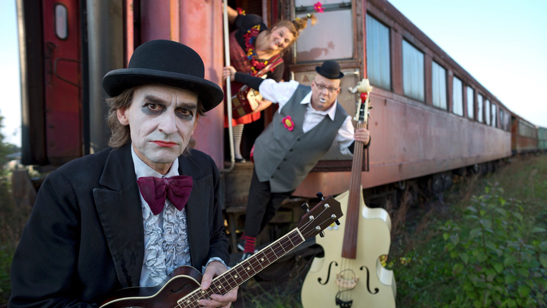 Die meisten Menschen hören gern Musik und lachen gern. Mixt man beides, dann bekommt man: die beste Clownsband der Welt! Von alten Jazz-Klassikern über elegische Balladen bis zu verwegenem Gypsy-Punk, diese Band spielt alles – fulminant, schön, schrill, schräg und erstaunlich! Nachmittags unplugged im Park, abends auf der Bühne.