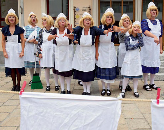 Das Blaumeier-Atelier, das seit über 20 Jahren mit seinen großartigen Kunstprojekten weit über Bremens Grenzen hinausstrahlt, hat seine bezaubernden Zimmermädchen mit ihren Wäschekörben und den neuesten Stadtgerüchten nach Kaiserslautern geschickt. Diese „Süßen Frauen“ haben reichlich Arbeit mit all der Wäsche, da ist man für jede helfende Hand im Publikum dankbar... Nach dem letztjährigen, gefeierten Wäsche-Coup machen die 13 Damen erneut die hiesige Linnen- und Herrenwelt unsicher!