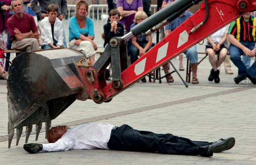 Eine Choreographie für einen Tänzer und einen Schaufelbagger, eine getanzte Romanze zwischen Mensch und Maschine. Ein Werkzeug, das sich scheinbar autonom bewegt, eine Schaufel, die gleich einer Hand den Tänzer trägt, erhebt, beschützt. Ein zum Leben erweckter Baggerarm, der seinem Gegenüber folgt oder ihn verfolgt. Eine märchenhafte Liebesgeschichte zwischen zwei ungleichen Wesen – doch wer ist die Schöne, wer das Biest?