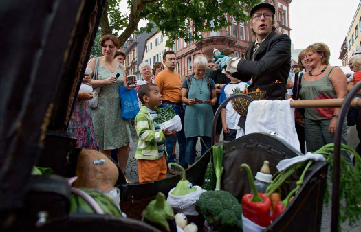 Einen alten Kinderwagen vor sich her schiebend, machen die „Gemüse-Kindermädchen“ einen Spaziergang durch Kaiserslautern. Stolz zeigen sie den Nachwuchs vor und haben selbstverständlich auch zu jedem Spross eine Geschichte zu erzählen. Die Zuschauer dürfen eine Zucchini füttern, einer Aubergine die Windeln wechseln und Magnus, die sportliche Wassermelone, oder Jessica, die preisgekrönte Süßkartoffel- Schönheitskönigin, bewundern.