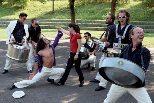Die Acousteel Gang ist bereits durch Tausende von Straßen gezogen, jede anders, jede voll von Menschen, die ihre Einkäufe erledigen, Kaffee trinken, bummeln. Hier ist das Territorium der Band, die Steel Drums sind ihre Verbündeten, metallisch und melodisch, aus dem Herzen der Karibik. Aus den ehemals sieben Steel-Drum-Samurais sind mittlerweile acht geworden, ein Sänger mit Megaphon ist hinzu gestoßen. Gemeinsam haben sie große Disco- und Ska-Klassiker entstaubt – ein energiegeladener Zug durch die Straßen!