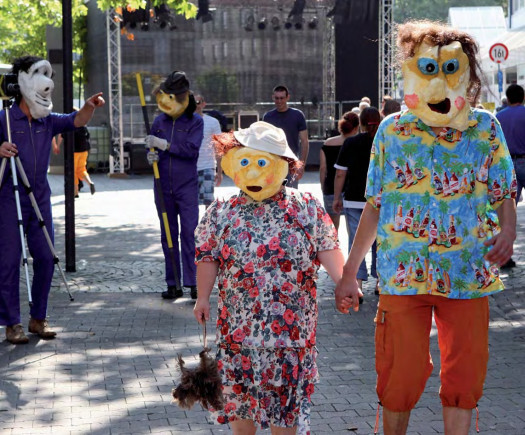 Walk Acts: Gustav, Inhaber des Jahrmarkstandes „Hau den Lukas“, mischt sich mit derbem Humor gern unters Volk und feiert kräftig. Peter hingegen ist vom Ordnungsamt und achtet strikt auf die Einhaltung jedweder Vorschriften. Und die Kinder Lisa und Fritz freuen sich, dass endlich mal jemand zum Spielen da ist... Skurrile Charaktere in bezaubernden Masken.