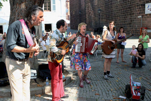 La Clique sur Mer – das sind sechs Musiker, sechs charmant-eigenwillige Charaktere, die seit 1996 Musik für die Straße machen. Mit Tuba, Saxophon, Trompete, Banjo und Schlagzeug sind sie unterwegs auf Straßen und Plätzen und spielen Eigenkompositionen, französische Standards, Walzer, Tango und Samba – poetisch, nostalgisch, originell und immer mit einem Augenzwinkern. Musik, die (sich) bewegt!