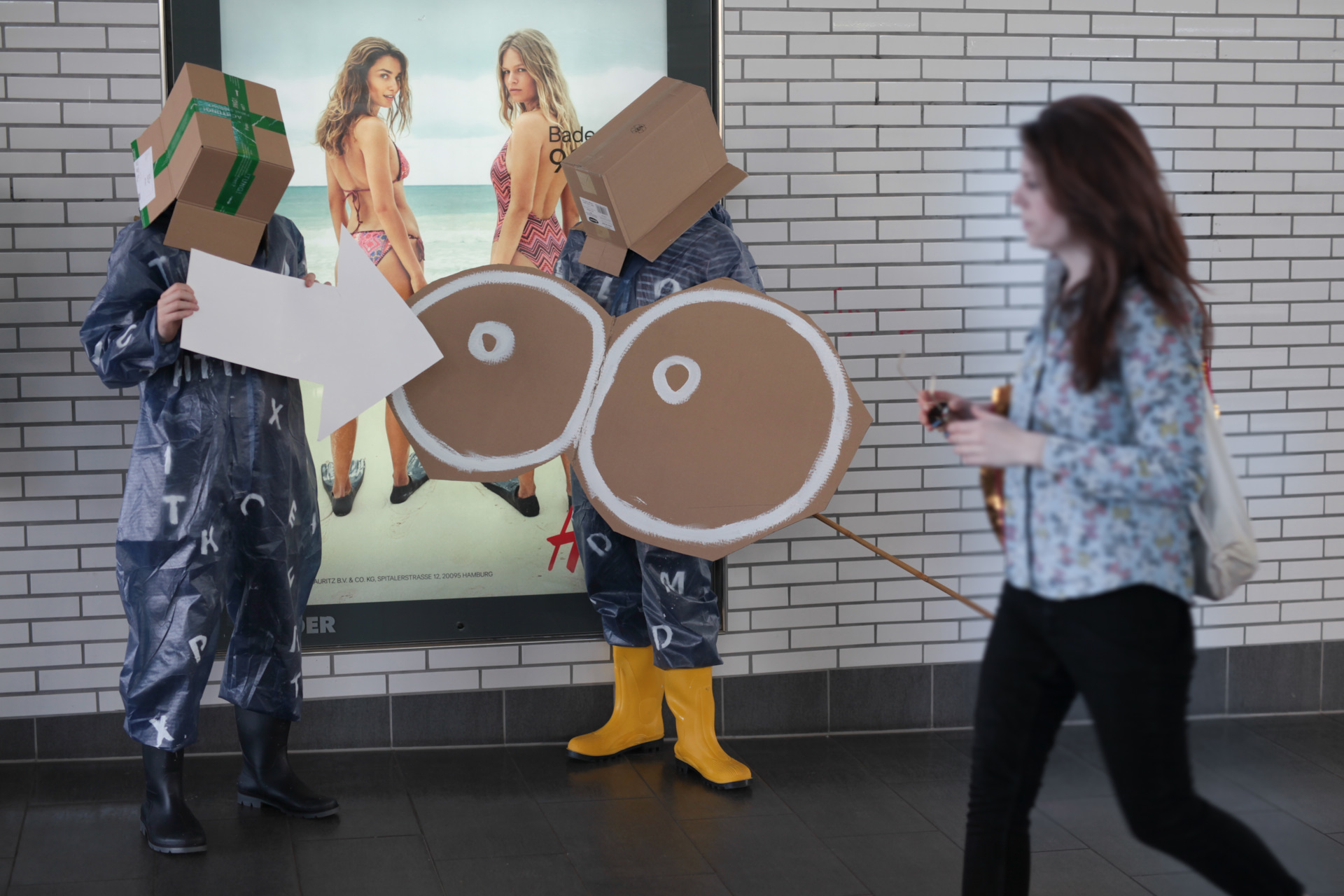 Sie sind da! Sie leben! Sie sind mitten unter uns! Meine Damen und Herren landen im Museum und mischen sich unters Volk. Ihre von Dada inspirierte Prozession steckt voller Querverbindungen zu fremden Welten, Fluchtpunkten und außerirdischen Zuständen. Mit ganz alltäglichen Gegenständen und Objekten verwandeln sie sich immer wieder in neue Figuren. Pappbecher verschmelzen in einer freundschaftlichen Begegnung mit einem Stromkasten. Pappkartons verwandeln sich in Vögel, die Becher werden zum Telefon. Den Soundtrack dazu liefern die Geräusche der Stadt. Meine Damen und Herren sind Hamburgs wichtigste inklusive Theatergruppe. Ihre performative Intervention ist eine Hommage an Dada, bei der aus banalsten Alltagsobjekten, Gesten und Geräuschen immer neue Assoziationen und Figuren entstehen. www.meinedamenundherren.net